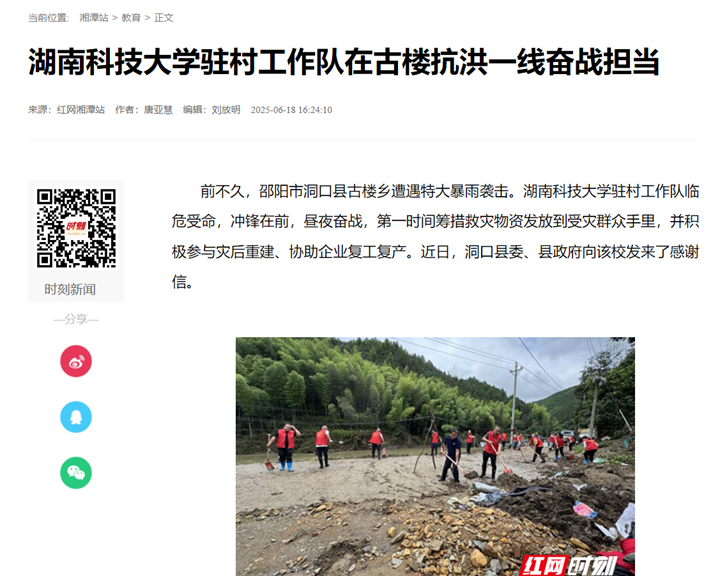 【红网】湖南科技大学驻村工作队在古楼抗洪一线奋战担当